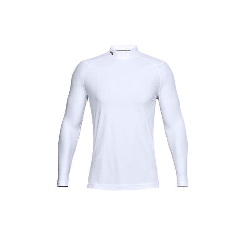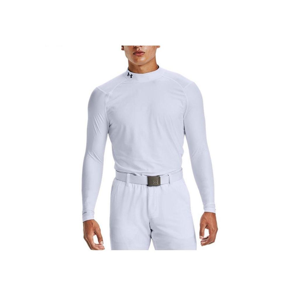 Under Armour Футболка для гольфа Iso-Chill с принтом логотипа, спортивная, облегающая, с высоким воротом и длинным рукавом, мужская, белая 1359966-100