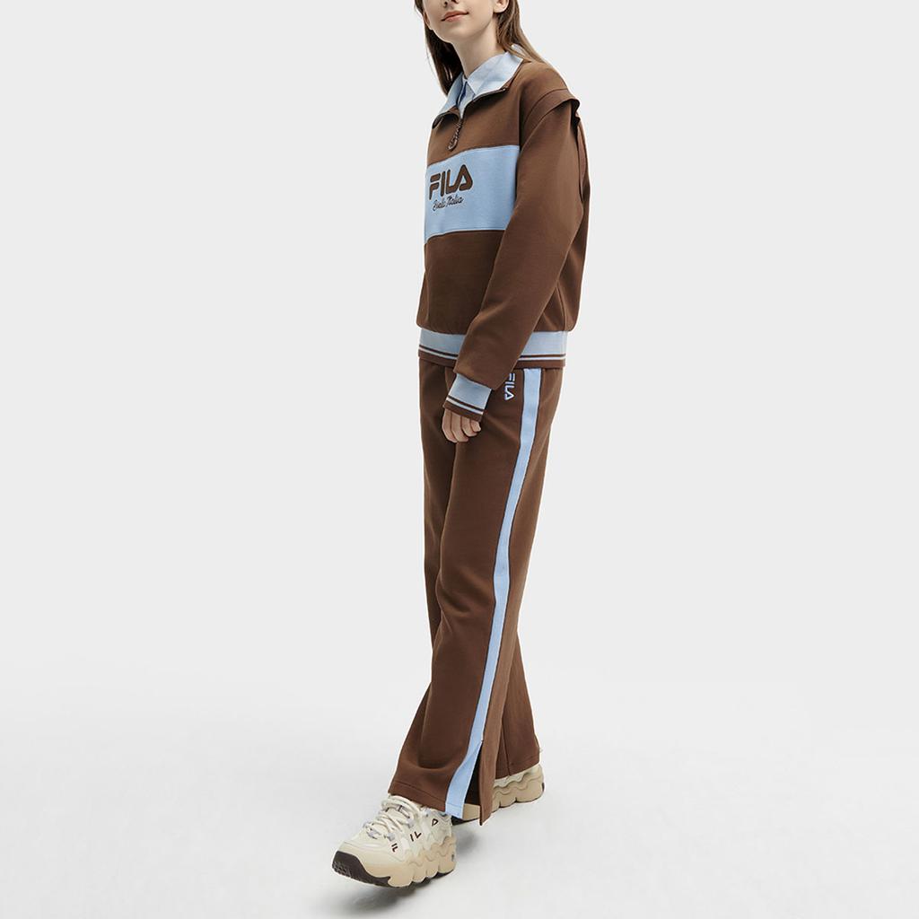 Fila Трикотажные повседневные брюки прямого кроя в стиле колор-блок Женский низ Кремово-коричневый F11W419603F-BN