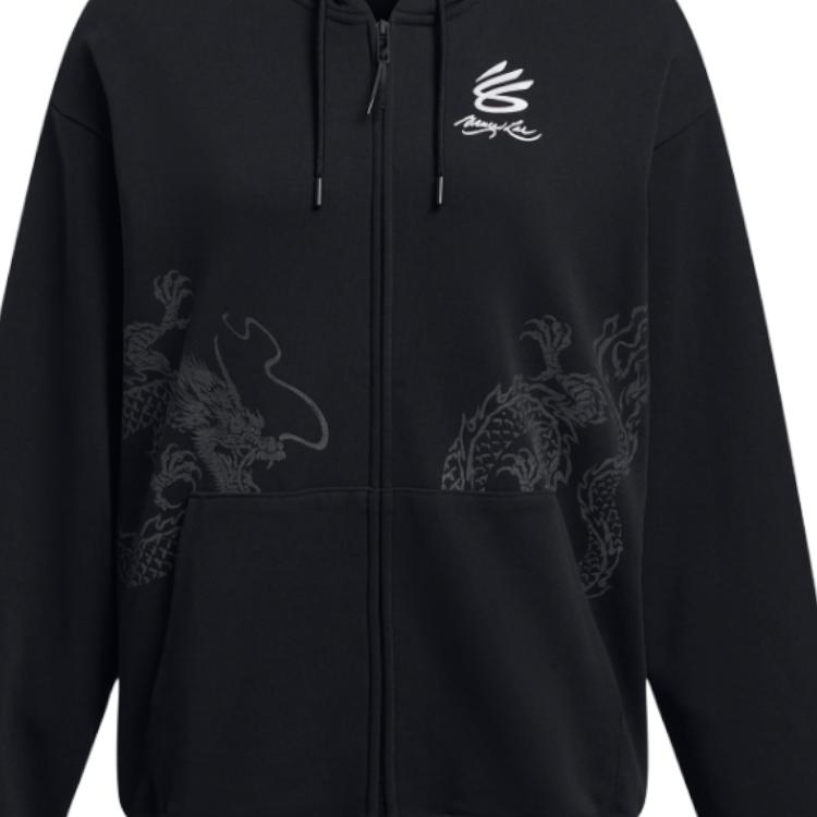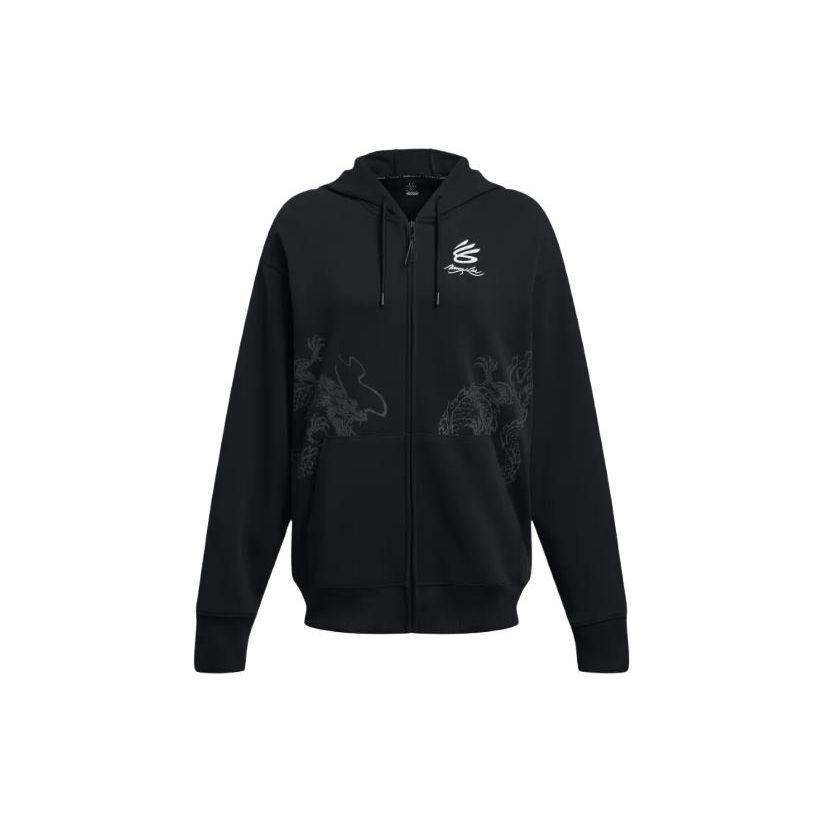 Under Armour Curry X Bruce Lee Collaboration SS24 Весенняя коллекция с принтом дракона на молнии с капюшоном Женские толстовки с капюшоном Черные 1383216-001