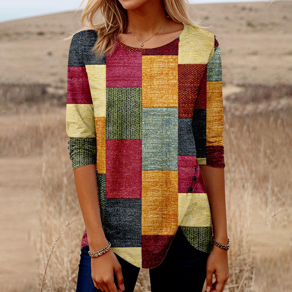 Классические футболки с принтом в виде сетки с длинными рукавами, осенняя хлопковая женская одежда, свободные женские футболки, топы, повседневные уличные футболки с круглым вырезом — купить товар онлайн с бесплатной доставкой до всему миру!