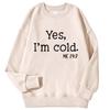 Да, я холодный. Свитшоты с буквенным принтом для женщин. Длинные рукава. Круглый вырез. Теплые толстовки с капюшоном. Тренд. Простые пуловеры. Женская одежда.