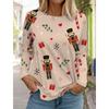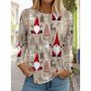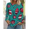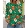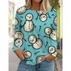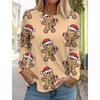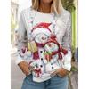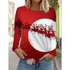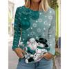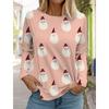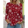 Женская футболка с длинным рукавом и рождественским принтом оленей, спортивный повседневный милый полиэстер с круглым вырезом и длинным рукавом