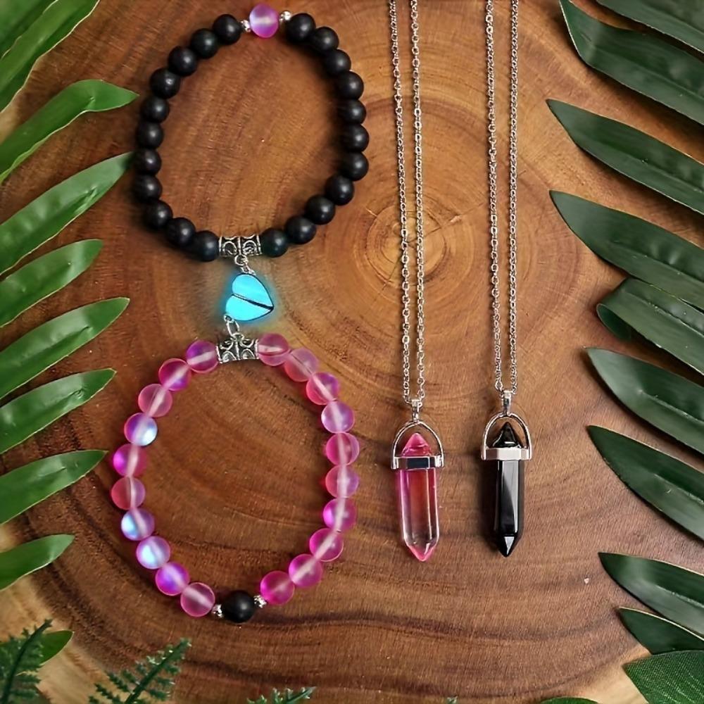 Браслет в виде светящегося сердца, 2 шт. + 2 шт. ожерелья в винтажном стиле в стиле бохо - подходит для мужчин и женщин - пара лучших друзей, комплект украшений в подарок