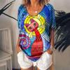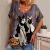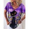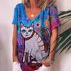 Винтажная женская футболка с принтом мультяшного котенка, рубашка с V-образным вырезом, одежда для девочек, толстовка с коротким рукавом в стиле Харадзюку, летняя свободная блузка