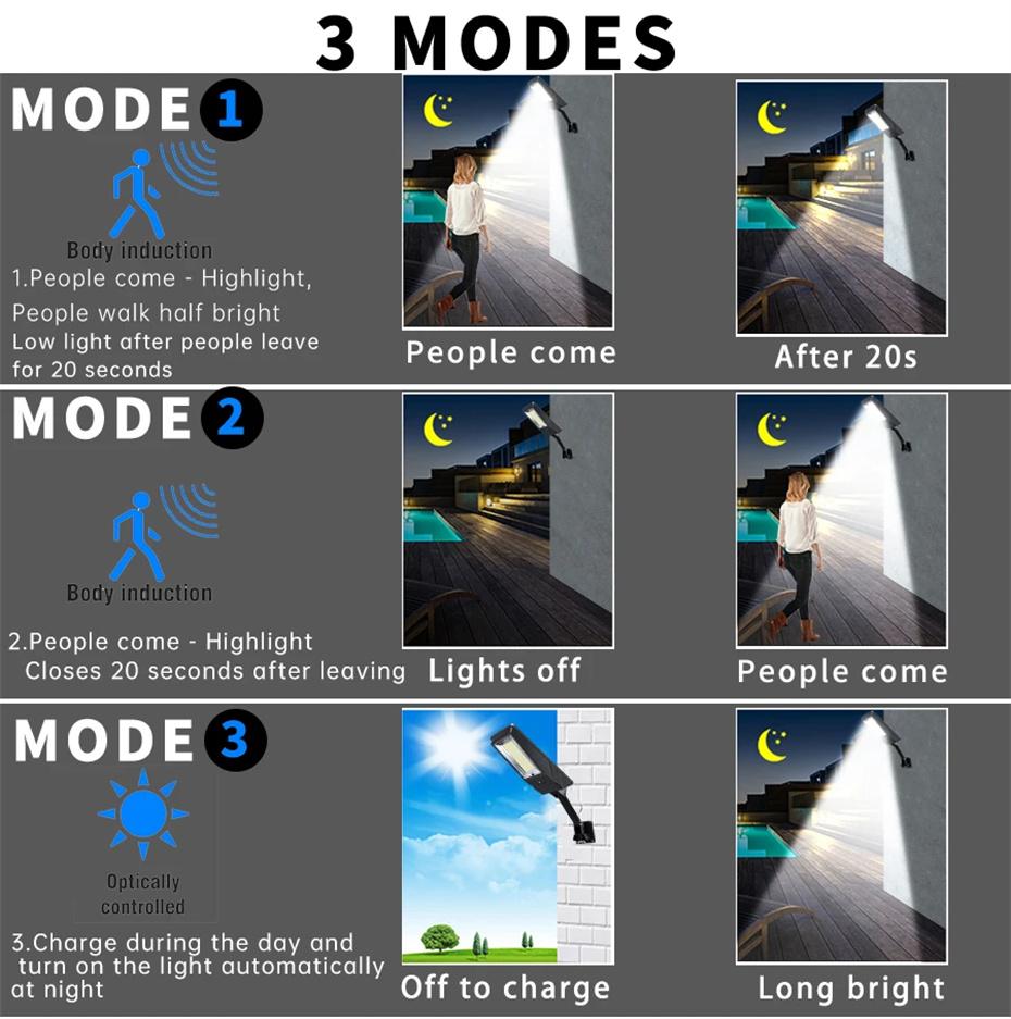 Светодиодный солнечный светильник с пультом дистанционного управления, 3 режима работы, уличный солнечный светильник, супер яркий, водонепроницаемый, с датчиком движения, солнечная лампа