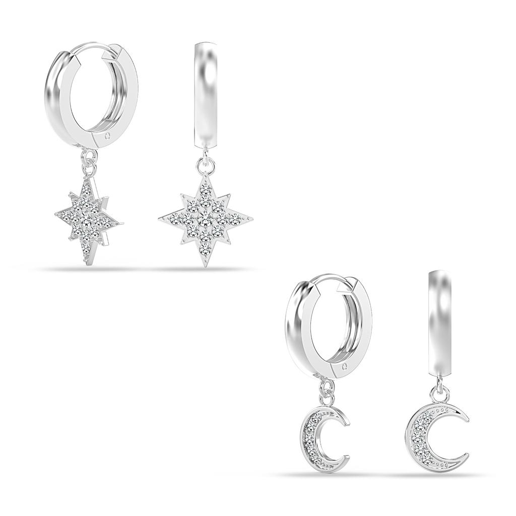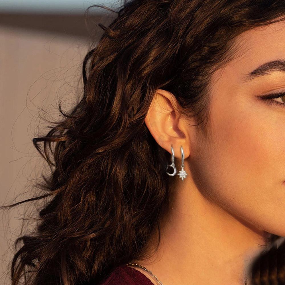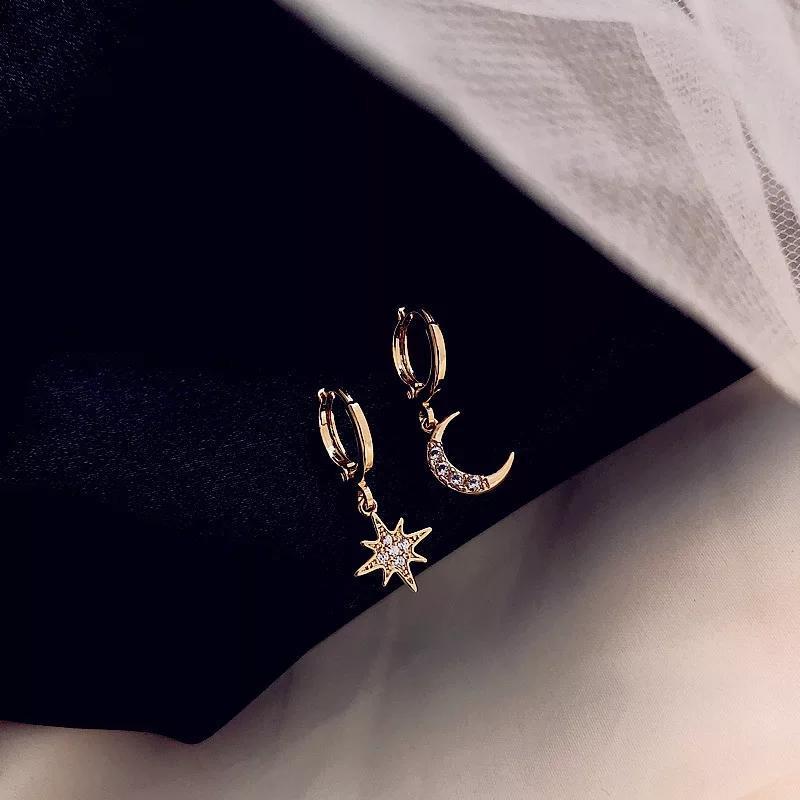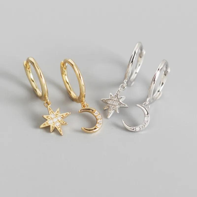 1 пара изысканных сережек, украшенных бриллиантами, звездами и луной, асимметричные серьги, универсальные серьги в холодном стиле для женщин