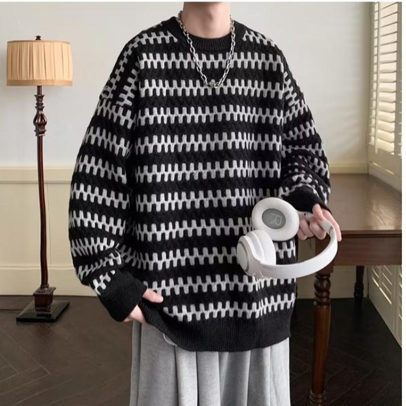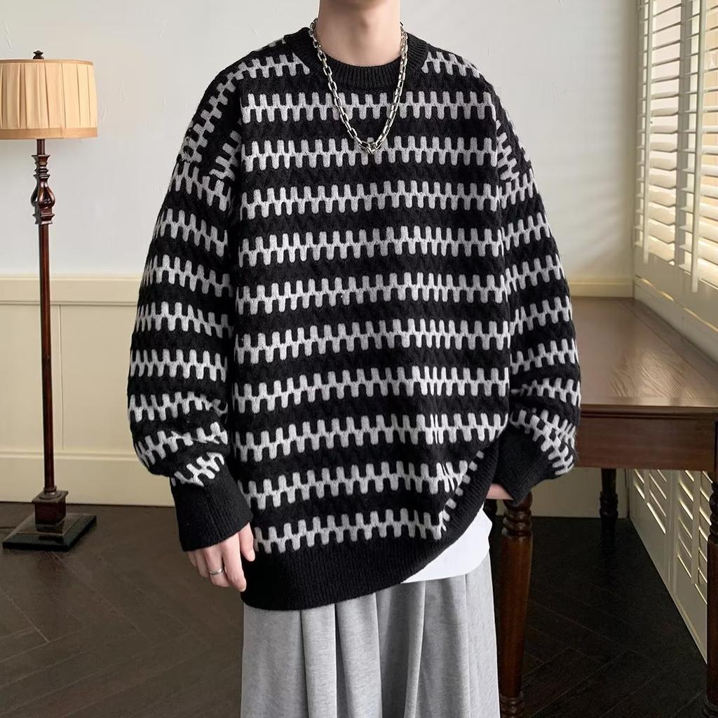 Полосатый свитер мужской осенне-зимний гонконгский модный бренд японский ретро студенческий повседневный универсальный свитер с круглым вырезом