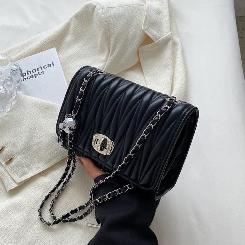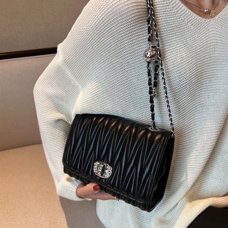 Сумка через плечо для женщин, роскошная дизайнерская плиссированная сумка ручной работы, маленькая квадратная сумка, модный тренд, украшенная металлическими шариками и цепочкой