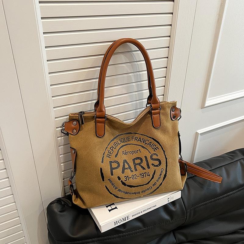 Женские повседневные сумки-тоуты большой емкости из холста, модные сумки с напечатанными буквами для путешествий, большие сумки для хранения, женская сумка-мессенджер через плечо