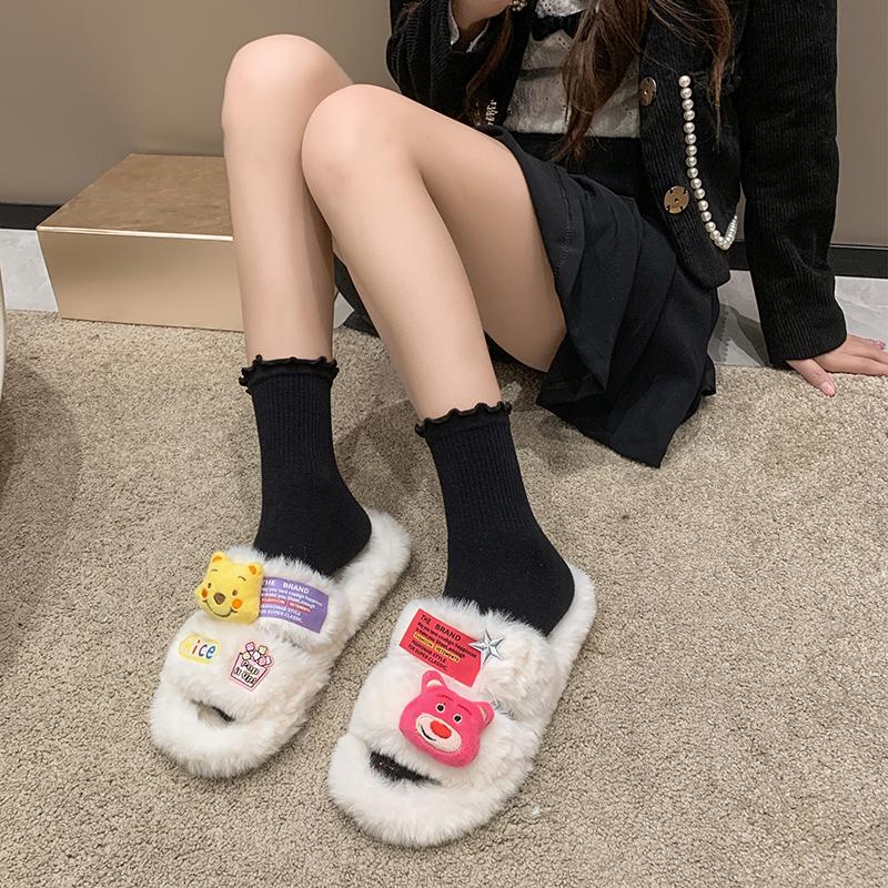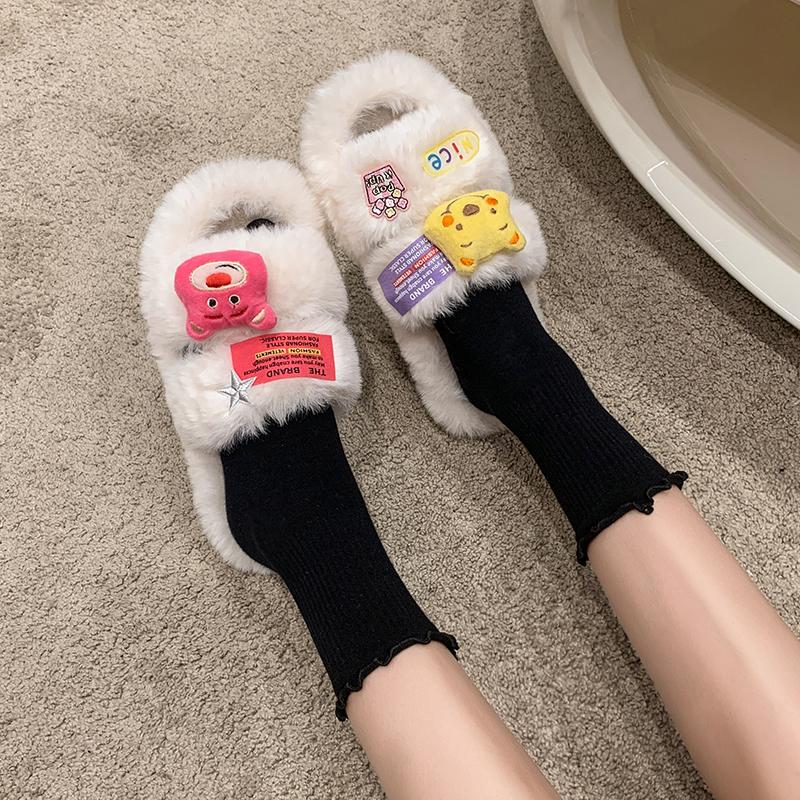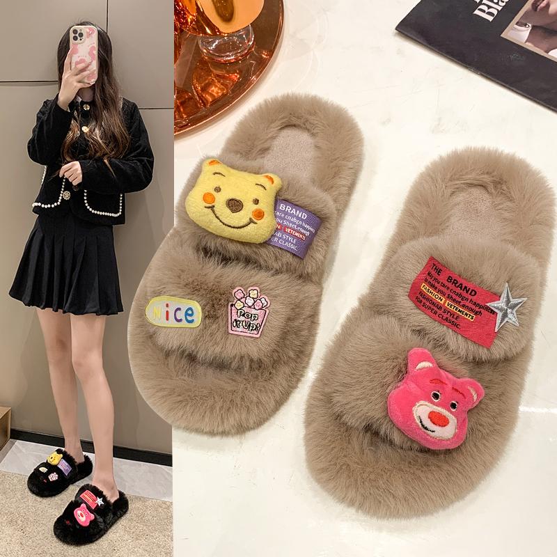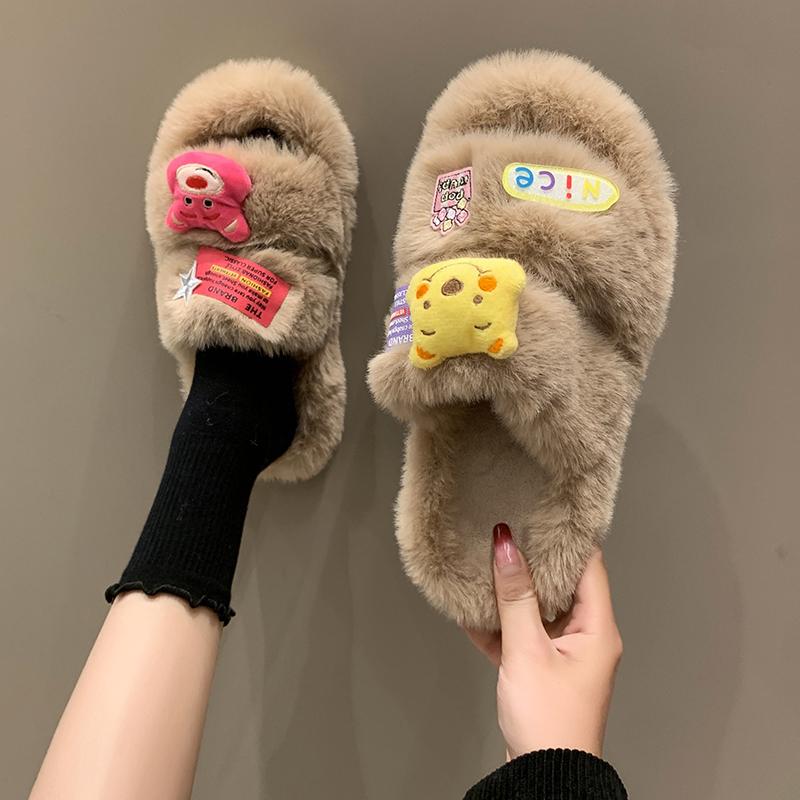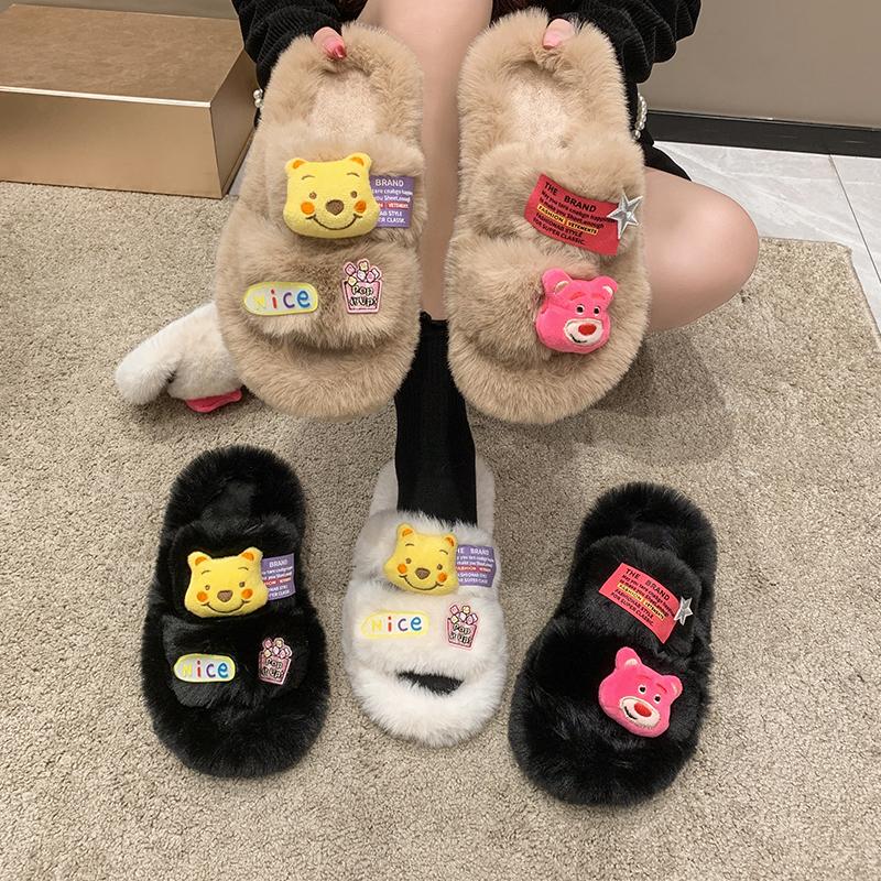 2024 женские тапочки большого размера зимняя плюшевая теплая 2024 спальня нескользящие тапочки толстая подошва женская мягкая удобная плоская обувь