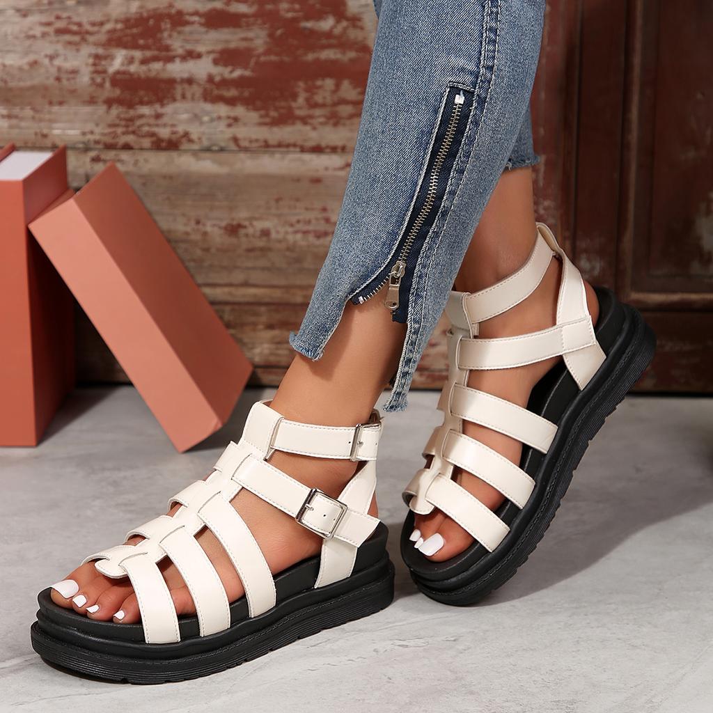 2024 Летние сандалии женские на платформе, увеличивающие рост, с круглым носком, с открытым носком, женские пляжные туфли с пряжкой на ремне, женские черные туфли