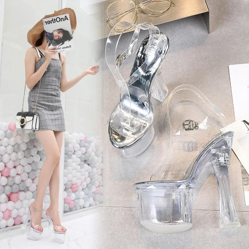 2024 2024 Женские туфли на толстом каблуке 8 см с толстой подошвой, большого размера, на очень высоком каблуке, модель 18 см, для подиума, для танцев на пилоне, прозрачные сандалии