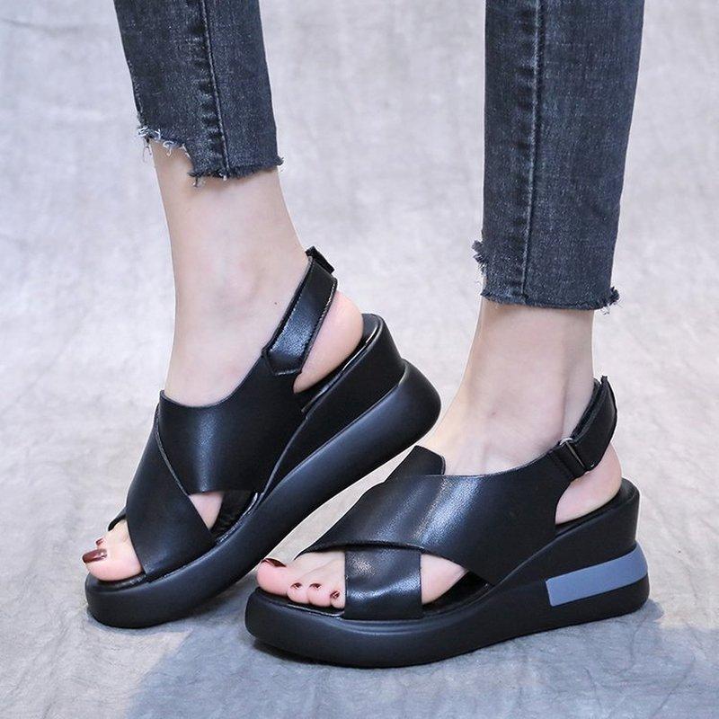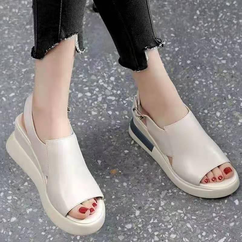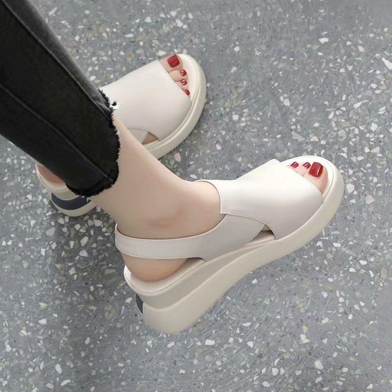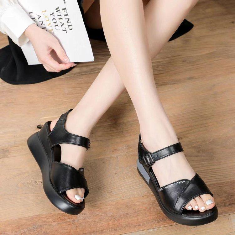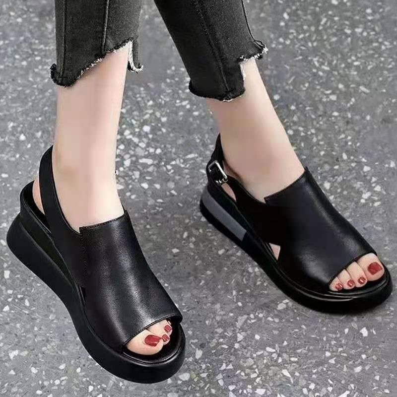2024 2024 Plus 42 Женские босоножки на танкетке из искусственной кожи на высоком каблуке Летние офисные женские босоножки на платформе Женские босоножки с открытым носком