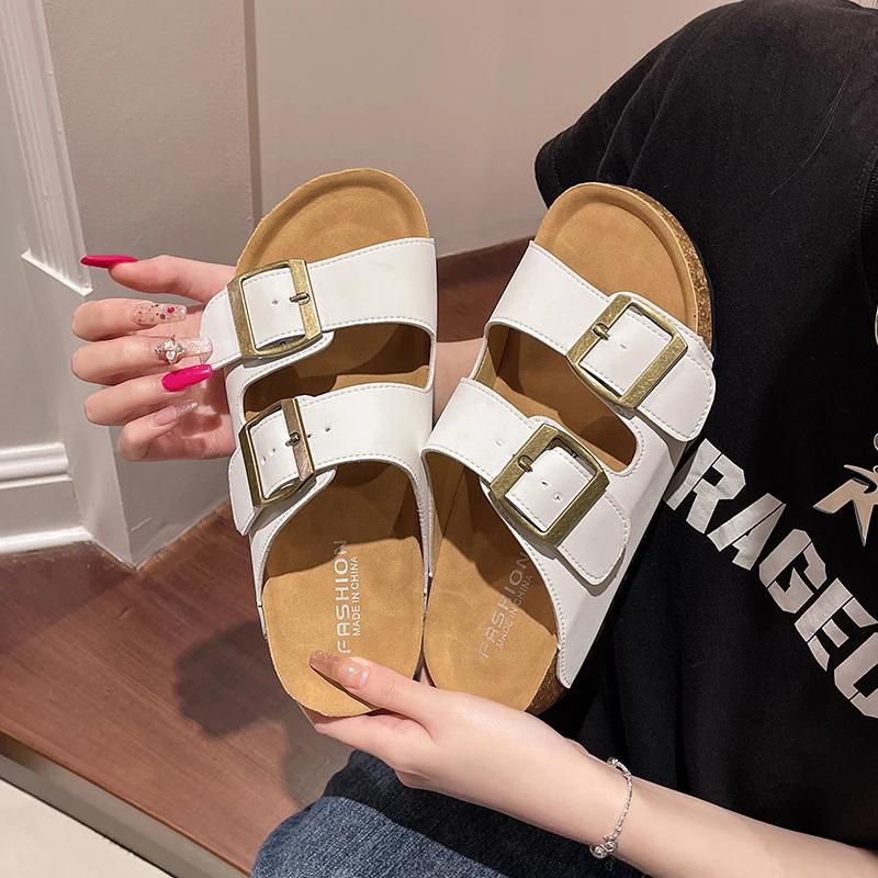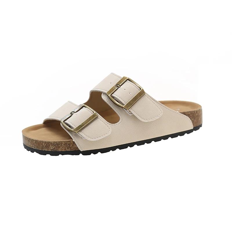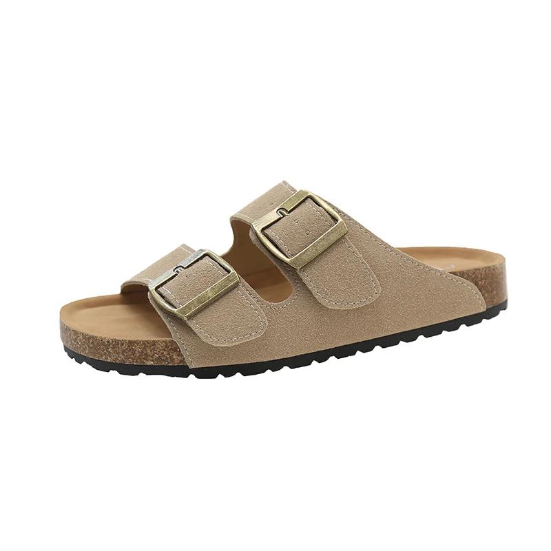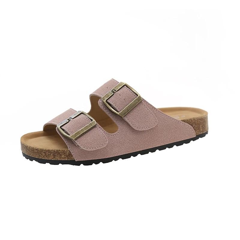 2024 2024 летние женские тапочки из пробки с двумя пряжками из коровьей замши на плоской подошве сандалии для женщин в стиле ретро 2024 садовые мюли-сабо
