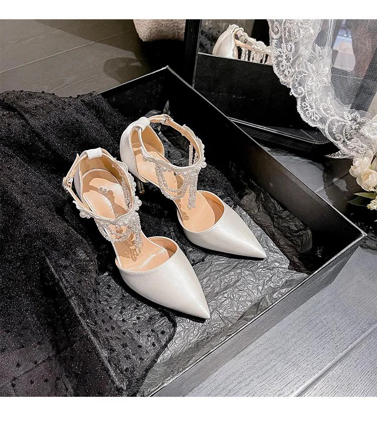 2024 2024 Новое роскошное свадебное платье с открытыми плечами, прямые линии, с кисточками, туфли на высоком каблуке, свадебные босоножки на тонком каблуке для банкетов