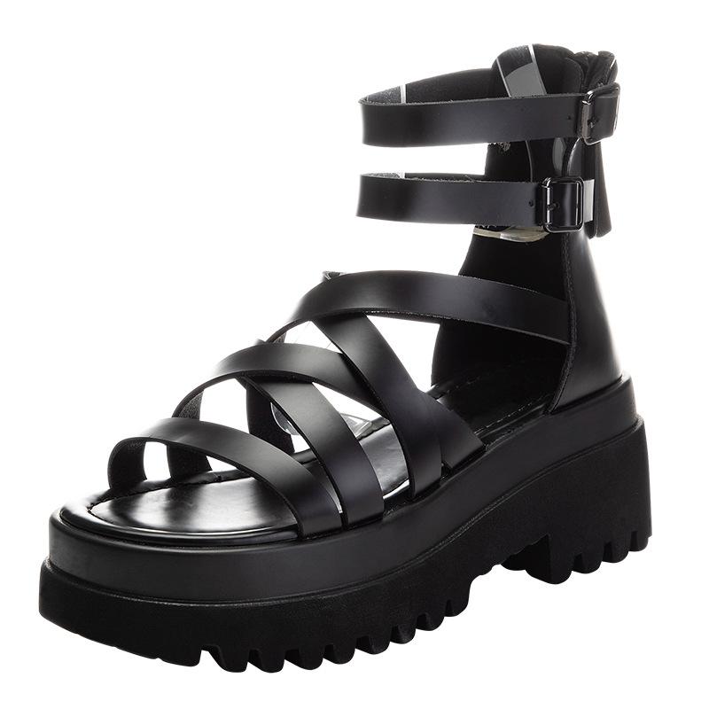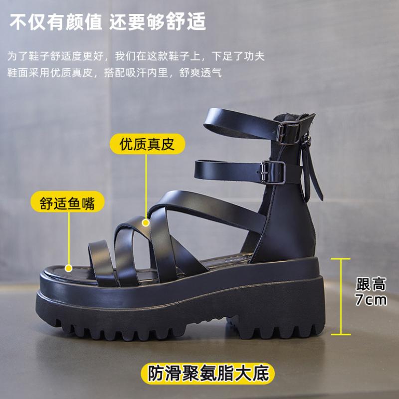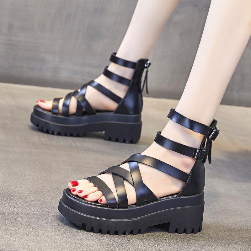 2024 г. римские сандалии из натуральной кожи, женские летние гладиаторские туфли, женские высокие сандалии на платформе, сандалии на молнии, повседневная пляжная обувь