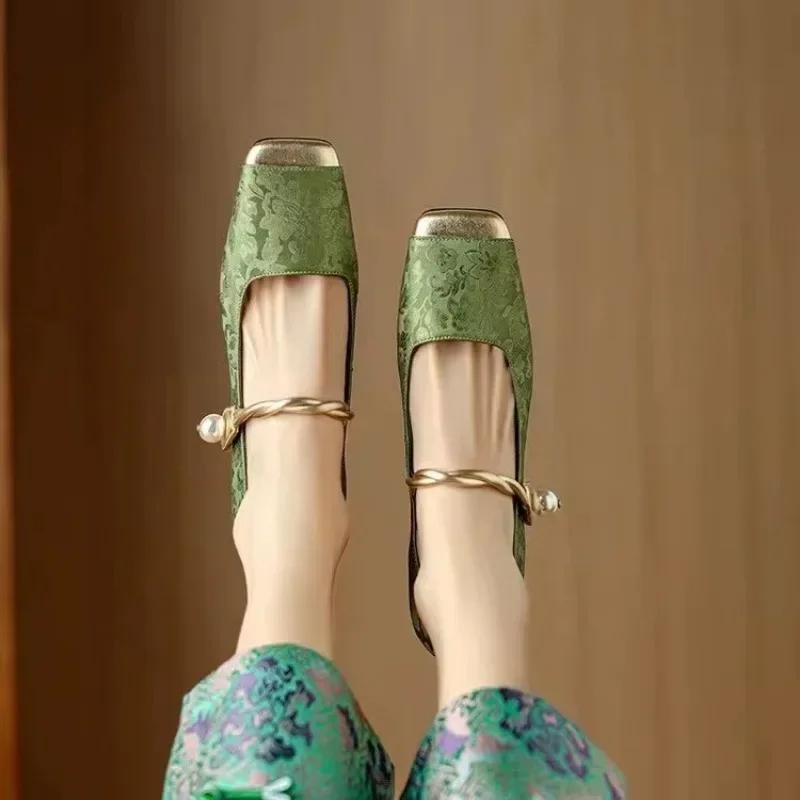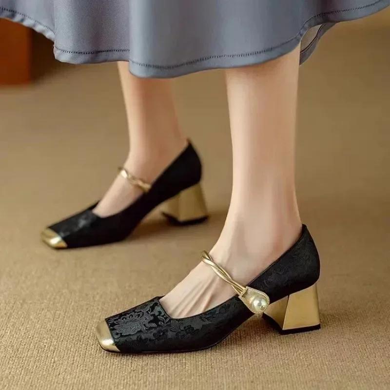 2024 Туфли Мэри Джейн на высоком каблуке женские новинка весна/лето 2024 года новые элегантные туфли на толстом каблуке с неглубоким носом и квадратным носком