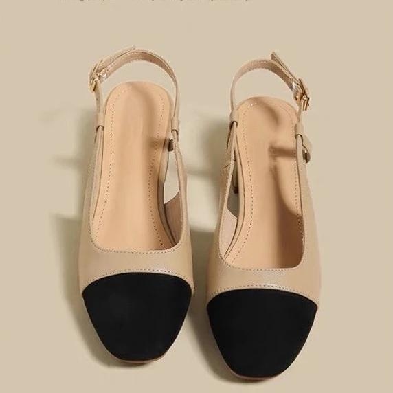 2024 Лето Новые цветные блоки Splicing Shallow Mouth 2024able и простой стиль верхней одежды женские сандалии Высокий каблук Одиночные туфли для женщин