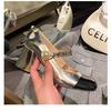 2024 2024 Винтажные туфли на высоком каблуке Женские весенние туфли на каблуке из кожи в стиле пэчворк Сандалии Летние туфли Мэри Джейн с металлической цепочкой
