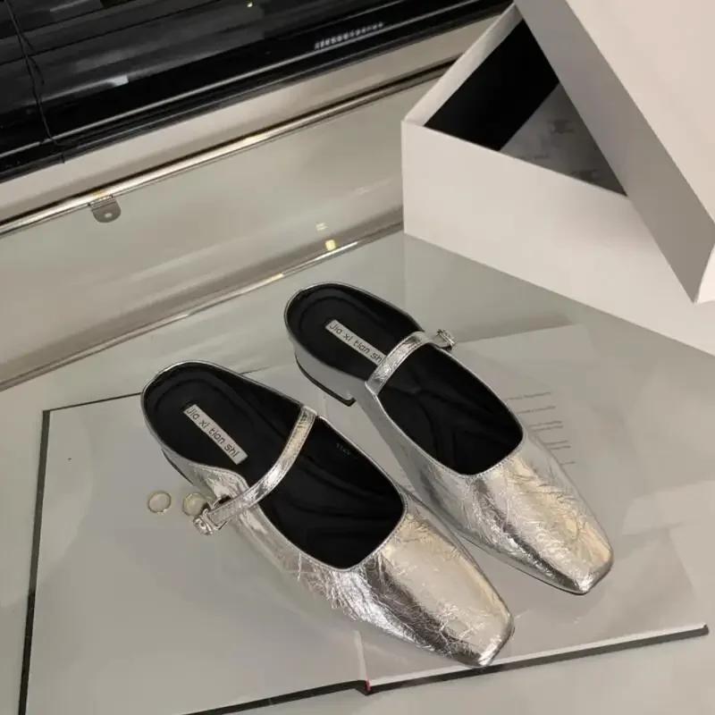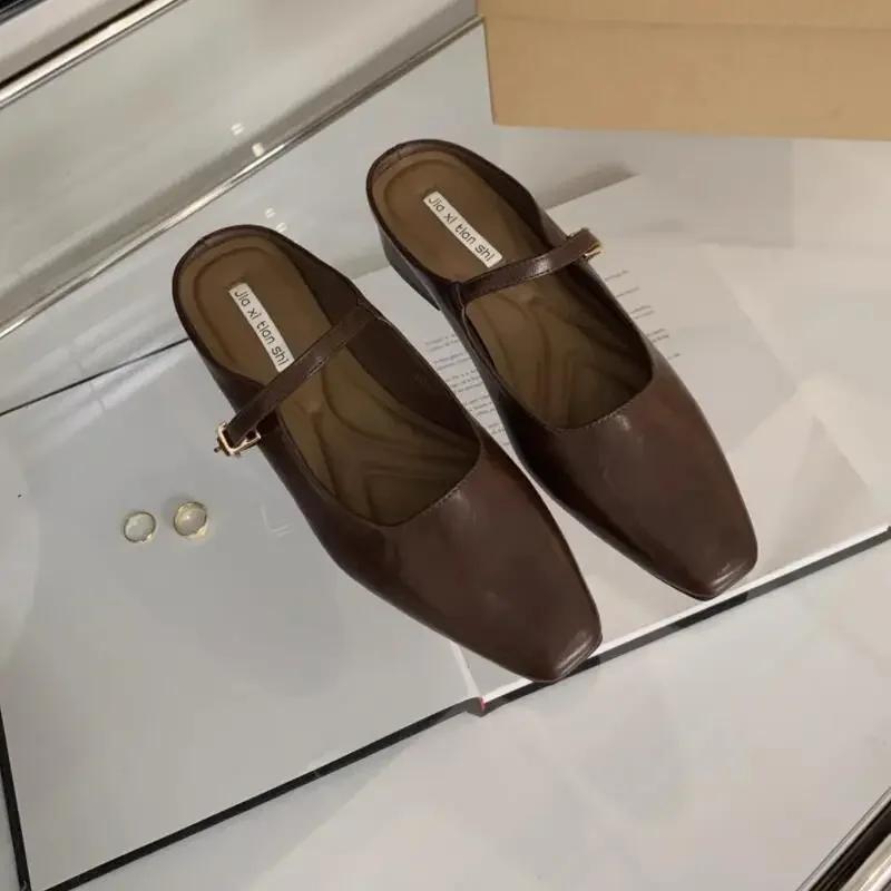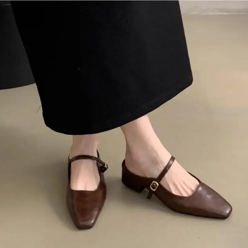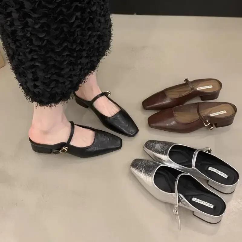 2024 Летние мюли-тапочки женские 2024 Туфли на низком квадратном каблуке женские элегантные вечерние платья сандалии-слайды женские сандалии с квадратным носком