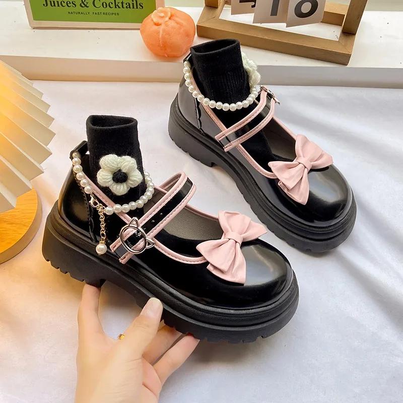2024 Туфли-лодочки Женская обувь 2024 Новинка 2024 Нескользящие Туфли Мэри Джейн с бантом Туфли на платформе Лолита Туфли в стиле ретро с круглым носком Женская