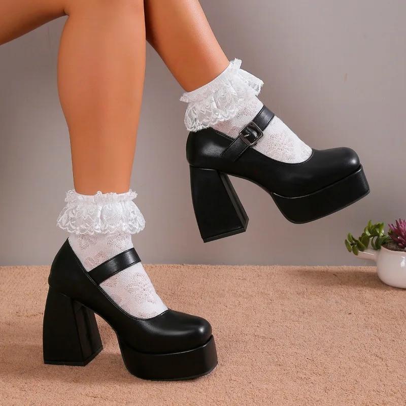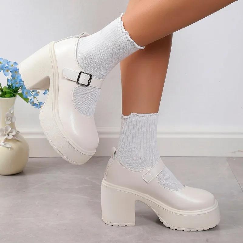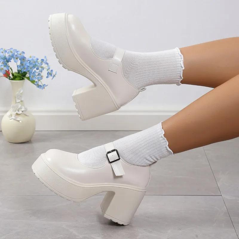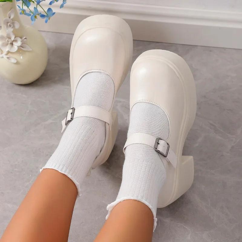 2024 2024 2024 Белые туфли на платформе Женские туфли Мэри Джейн с пряжкой на ремешке Женские готические туфли на толстом каблуке для вечеринок Женские туфли Zapatos Mujer