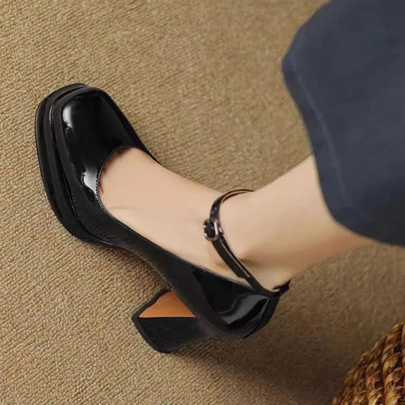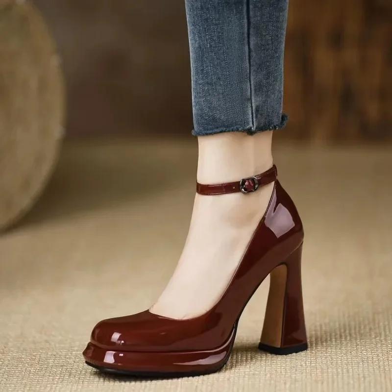 2024 Толстая подошва на высоком каблуке Женская обувь Solid 2024 Темперамент Одиночные туфли Весна Лето щиколотки Пряжка Элегантная женская обувь на каблуке
