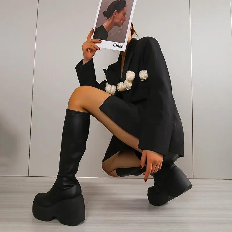 2024 2024 Абсолютно новые готические стильные сексуальные элегантные женские ботильоны на толстой платформе большого размера 43 удобная женская обувь для ходьбы туфли на платформе