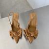 Женские босоножки на высоком каблуке 2024 года, лето 2024 года, туфли-лодочки с бантом и острым носком, элегантные женские туфли-лодочки