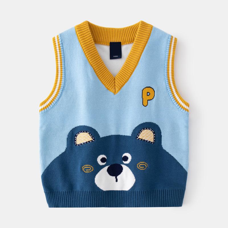 Осенне-зимний детский теплый жилет для мальчиков, милый вязаный жилет с медведем, детские 1-6 лет, детская утепленная теплая верхняя одежда для детей, свитер