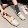 Профессиональные одинарные туфли, женские новые весенние маленькие кожаные туфли на плоском каблуке с квадратным носком, женские большие размеры, женские лоферы с одной педалью, два ношения