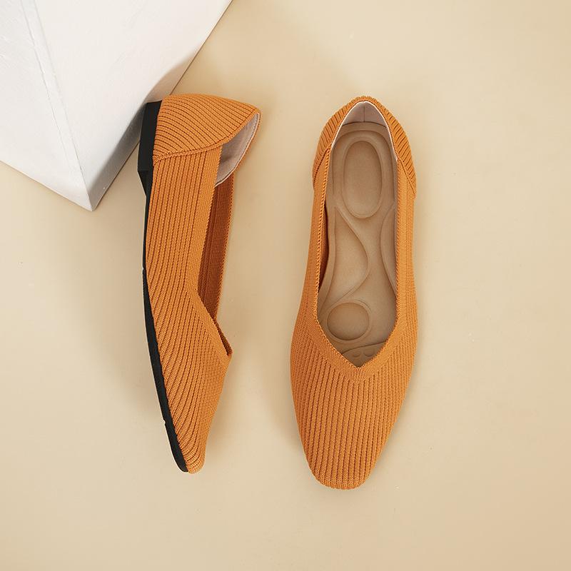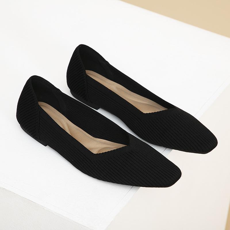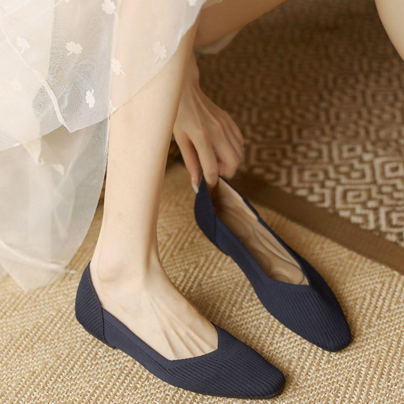 Женские неглубокие однотонные дышащие туфли на плоской подошве. Трикотажные туфли с плоским носком.