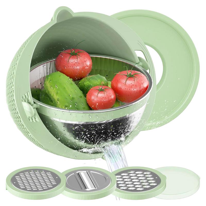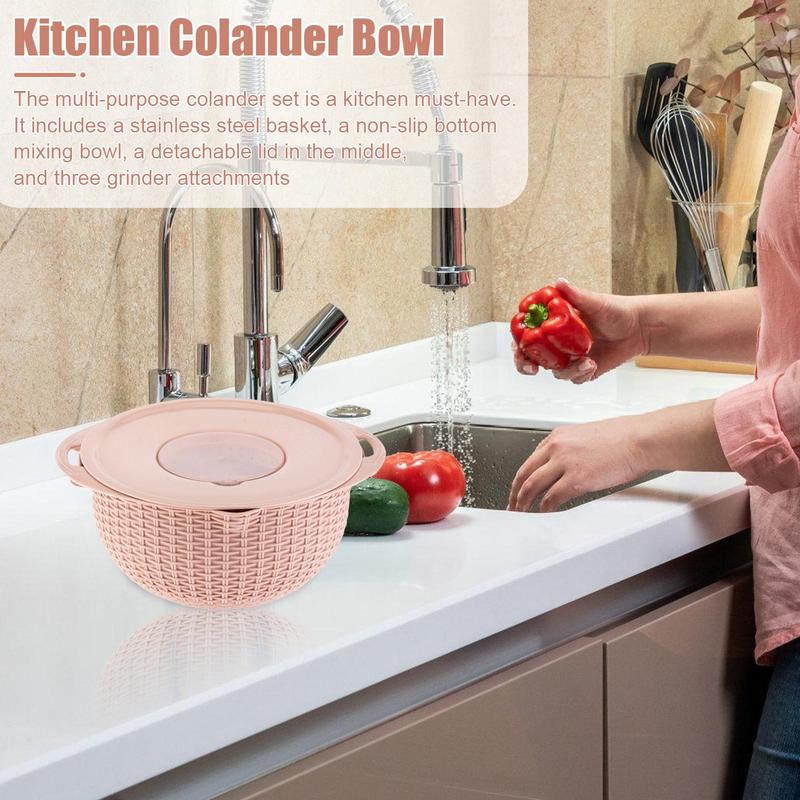 Кухонный дуршлаг, набор мисок, сито для риса, миска для чистки фруктов, дуршлаг из нержавеющей стали с ручками, двухслойная вращающаяся кастрюля
