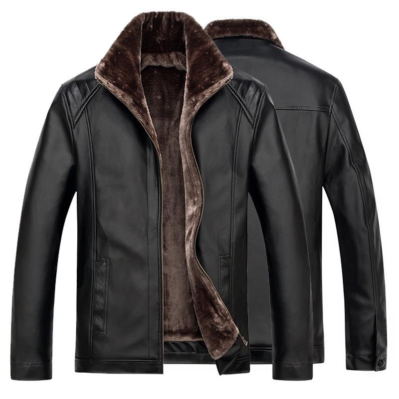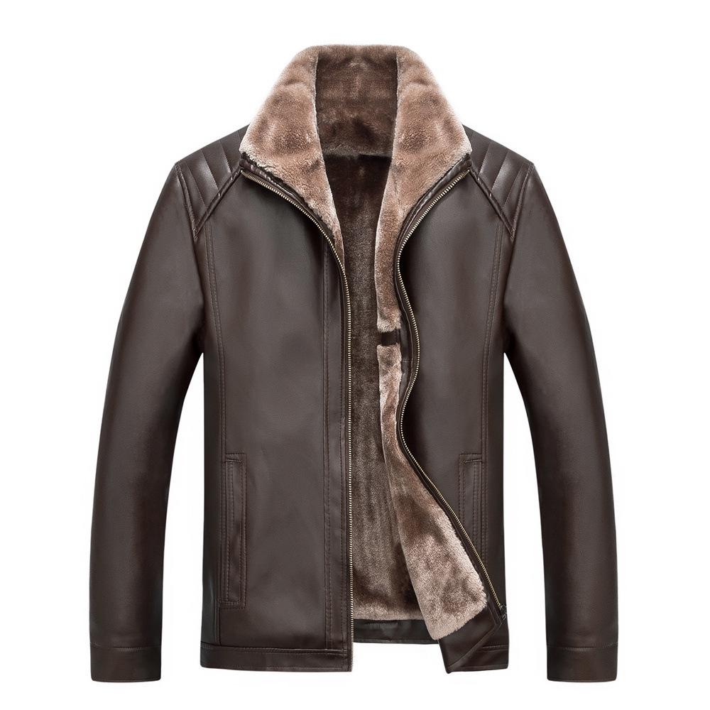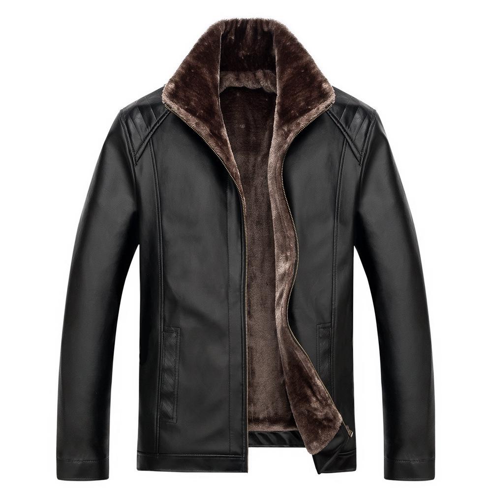 Мужской воротник-стойка большого размера, шуба из фуакса, зимняя кожаная куртка, зимняя теплая верхняя одежда