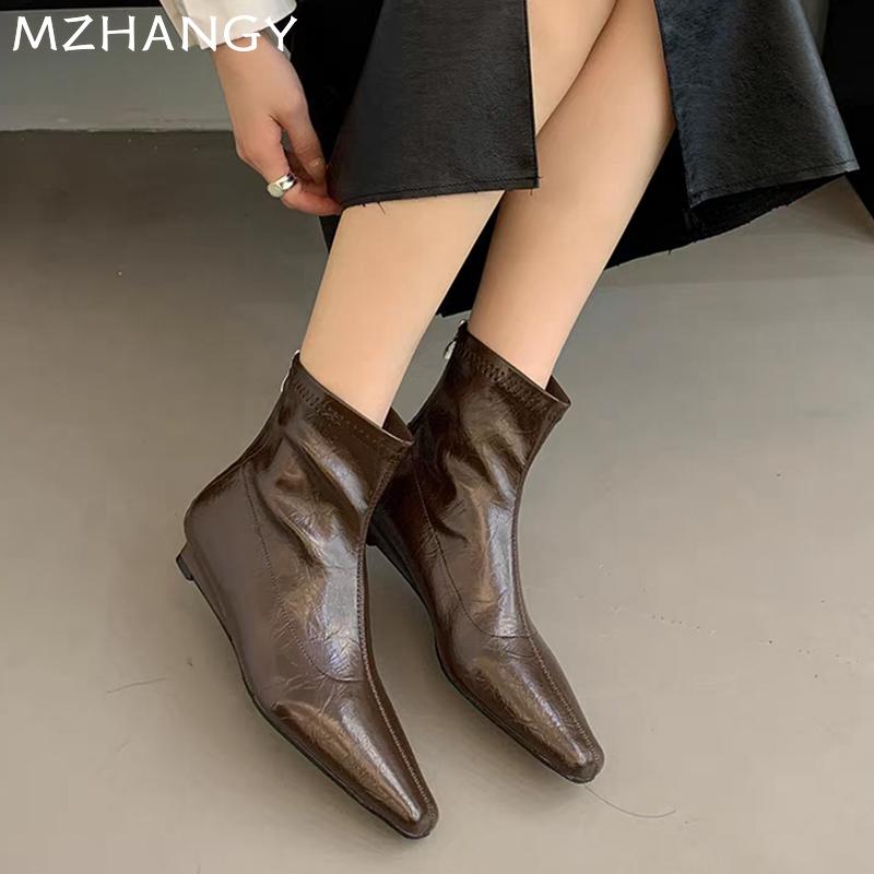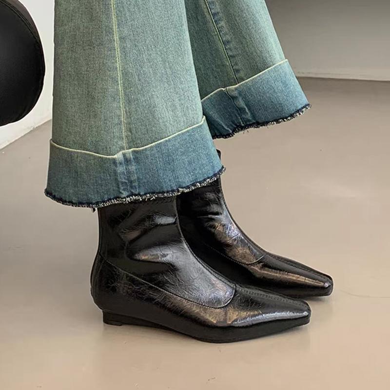 Женские кожаные зимние ботильоны на плоской подошве зимние туфли с острым носком женские модные ботинки челси 2024 года зимние женские готические новые ботинки