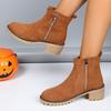 Женские замшевые ботильоны на среднем каблуке, дизайнерская обувь, массивные женские туфли 2024 года, модные короткие ботинки «Челси», зимние туфли-лодочки, новые женские ботинки