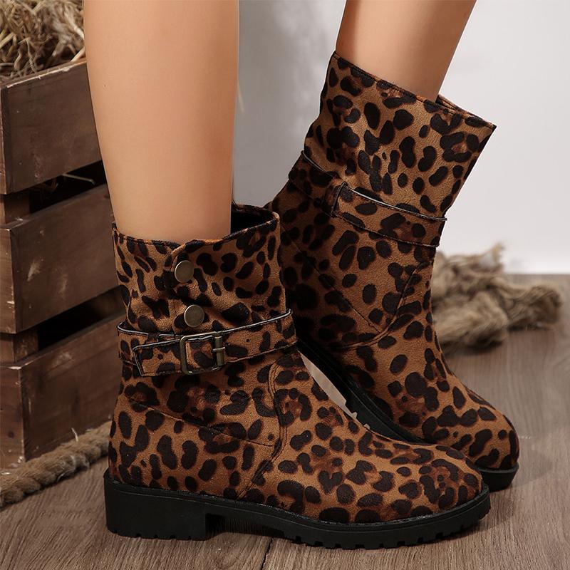 Женские замшевые леопардовые ботильоны зимние туфли на плоской подошве женская мода 2025 года новые ретро зимние мотоциклетные ботинки Mujer Botas — купить товар онлайн с бесплатной доставкой по всему миру!