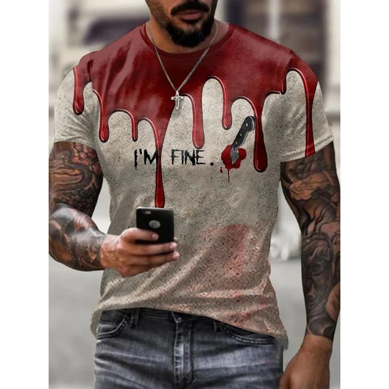 Футболка с 3D-принтом и рисунком пятна крови для мужчин, модная дышащая футболка с коротким рукавом и круглым вырезом, трендовая мужская одежда в стиле ретро, мужская футболка