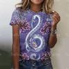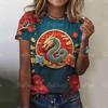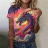 Женская футболка с драконом, модная футболка с 3D-принтом, анималистичный узор, короткие рукава, свободные уличные футболки, летние повседневные женские топы