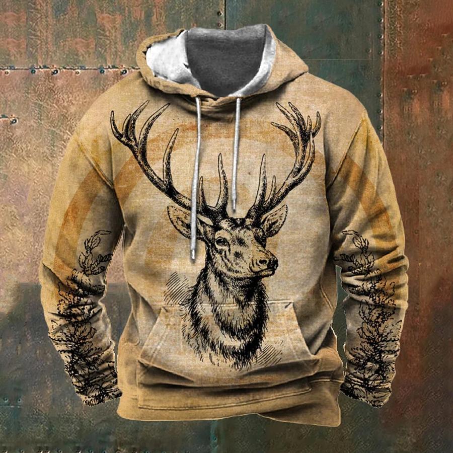 Винтажная мужская толстовка с капюшоном с принтом оленя 3D, свободная одежда, осенние толстовки с длинными рукавами, повседневный пуловер