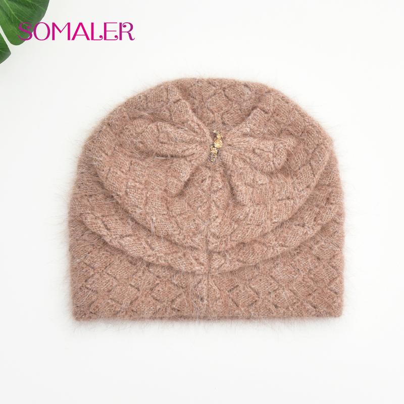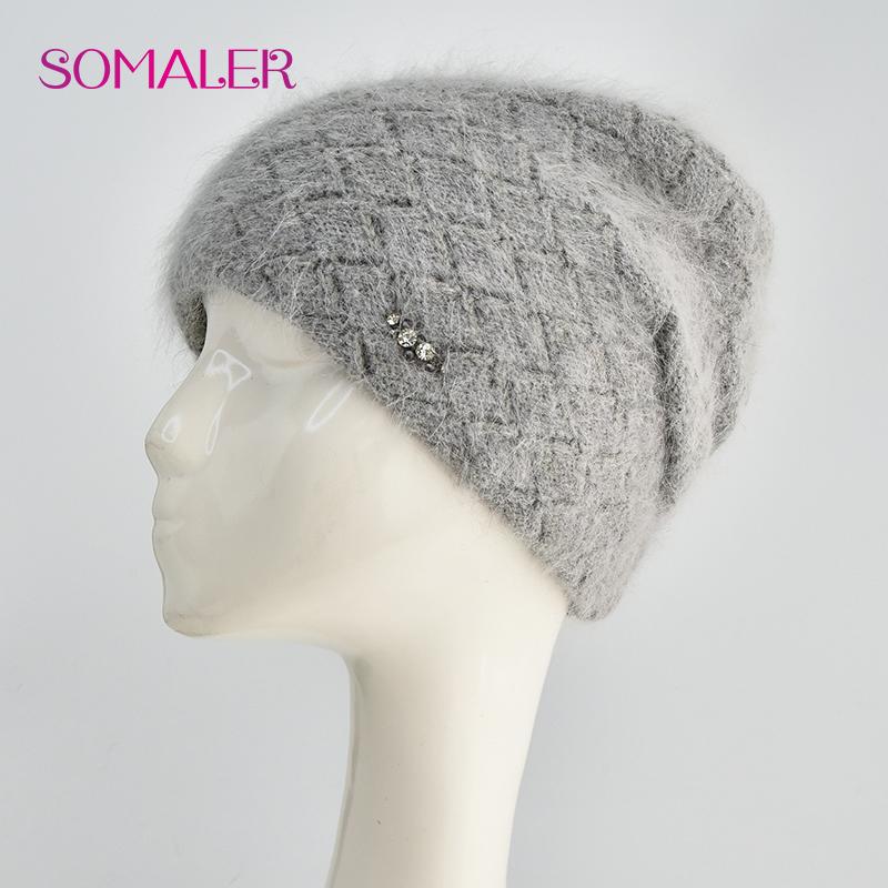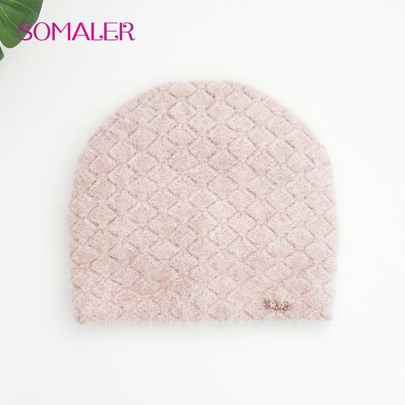 Зимняя шапка для женщин из шерсти ангорского кролика, вязаные шапки, толстая теплая женская шапка, женская шапка из чистого кашемира