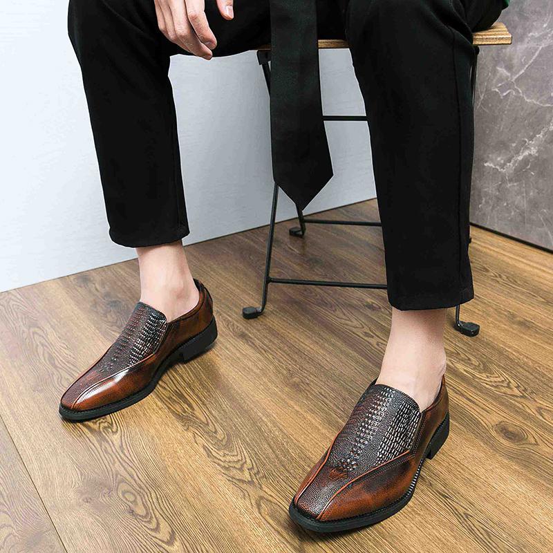 Весенние новые тисненые крокодиловые заостренные узкие повседневные туфли кожаные мокасины мужские деловые туфли для официальной одежды модная мужская повседневная обувь