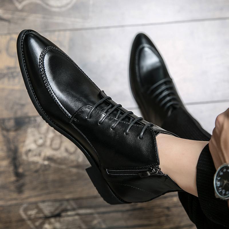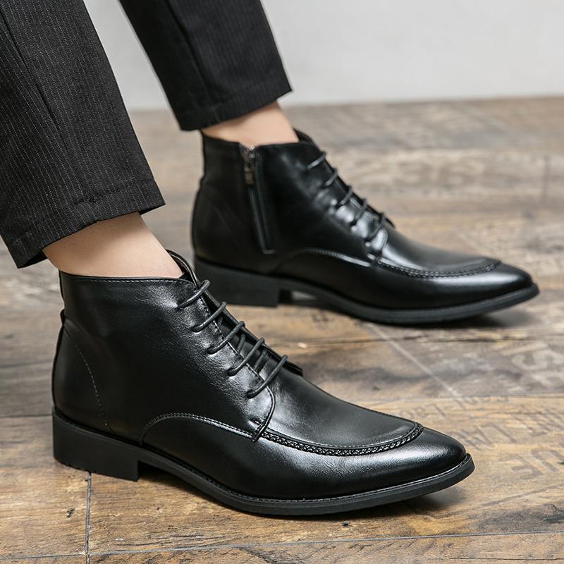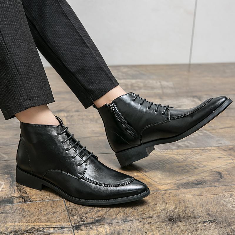 Ботинки челси мужские осень 2024 новые высокие кожаные туфли в британском стиле средней высоты черные рабочие костюмные короткие остроносые ботинки классические ретро