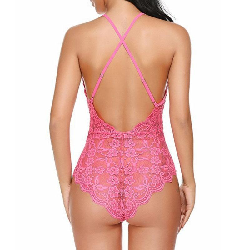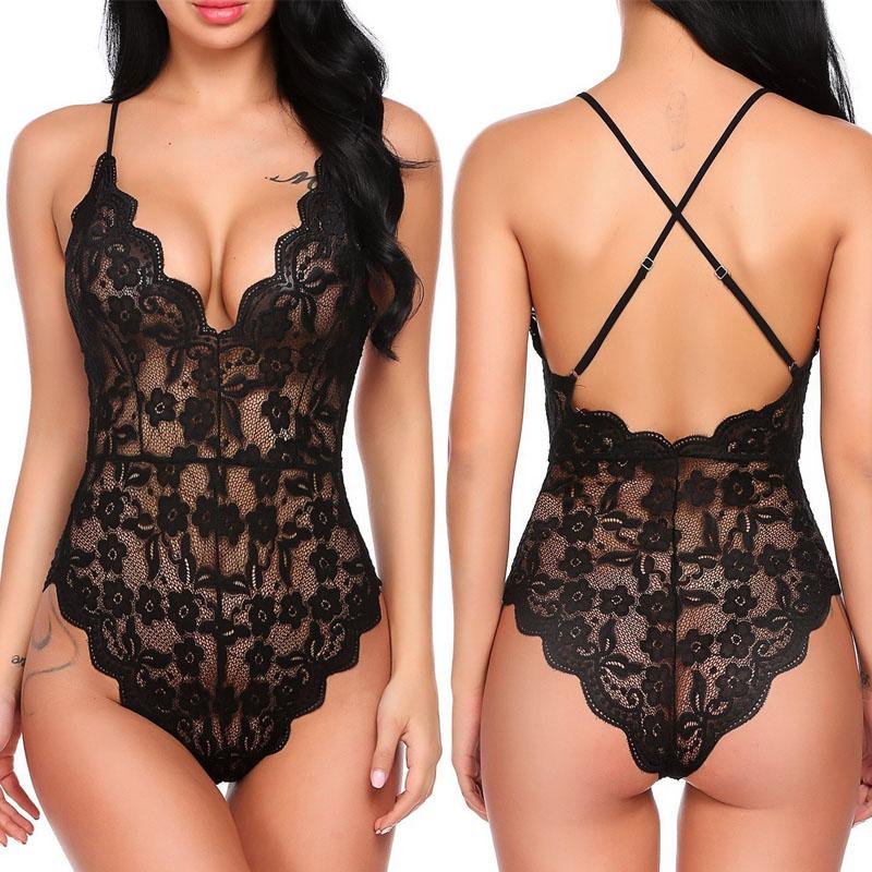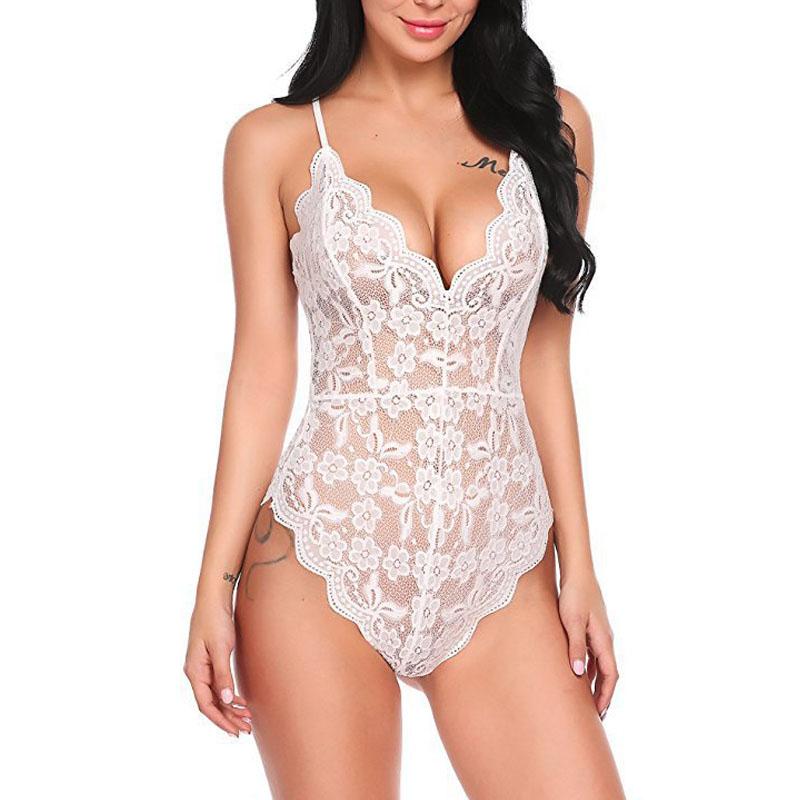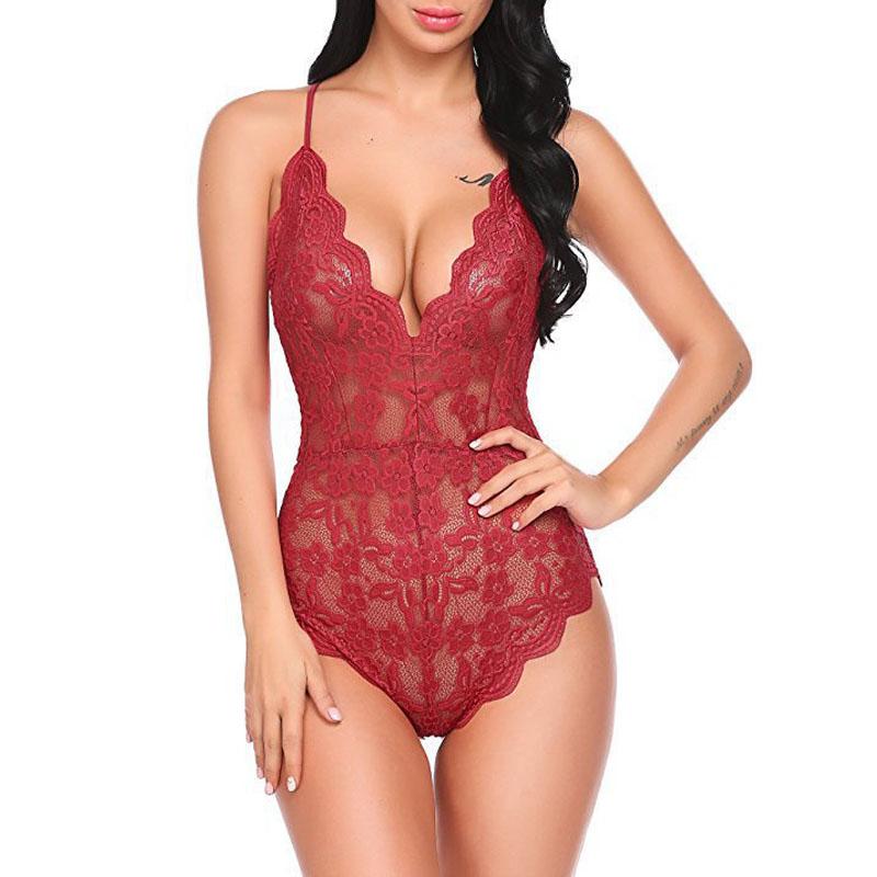 Сексуальные женские боди с кружевом на бретелях Perspective Lingerie Deep V-Neck Bodysuit