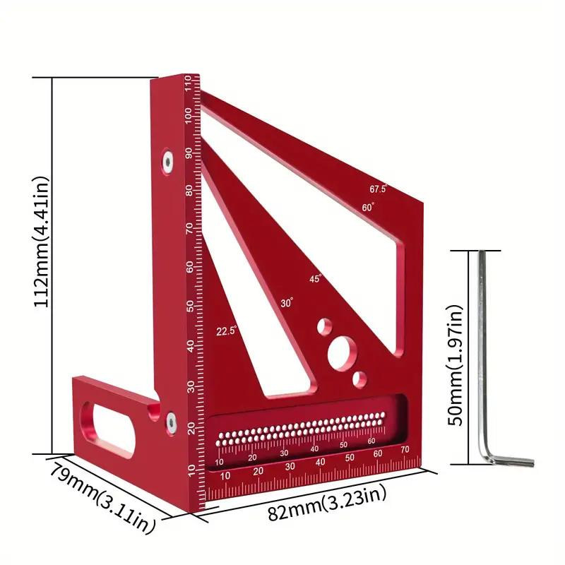Алюминиевый сплав 3D многоугольный транспортир для деревообработки с Т-образной чертилкой - измерительная линейка 22,5/30/45/60/67,5/90 градусов