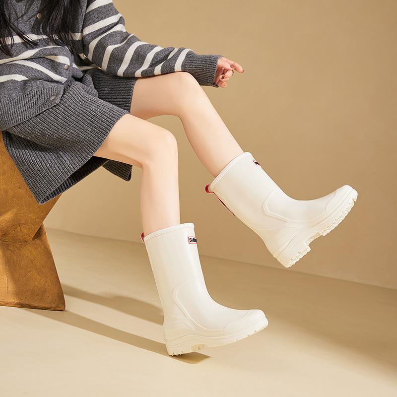Модные женские нескользящие резиновые сапоги среднего размера Tube Bundle Mouth