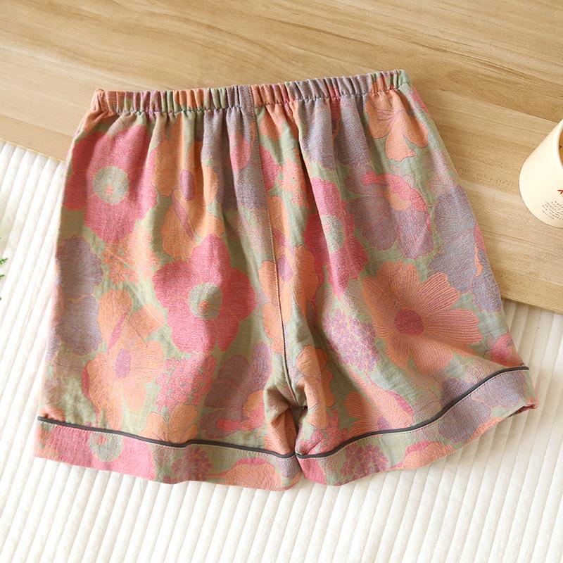 Летние женские шорты 100% хлопок винтажная пряжа ткачество напечатанная пижама тонкие свободные карманы шорты домашние брюки