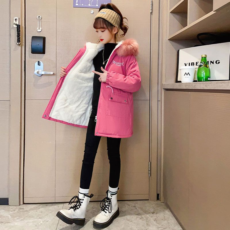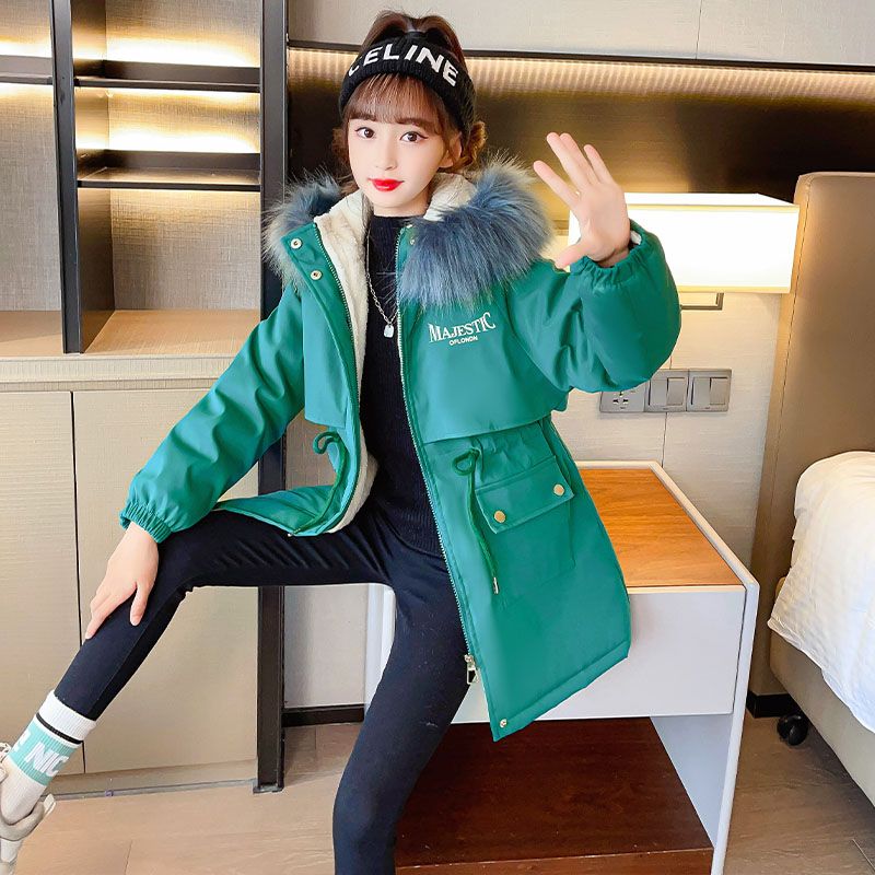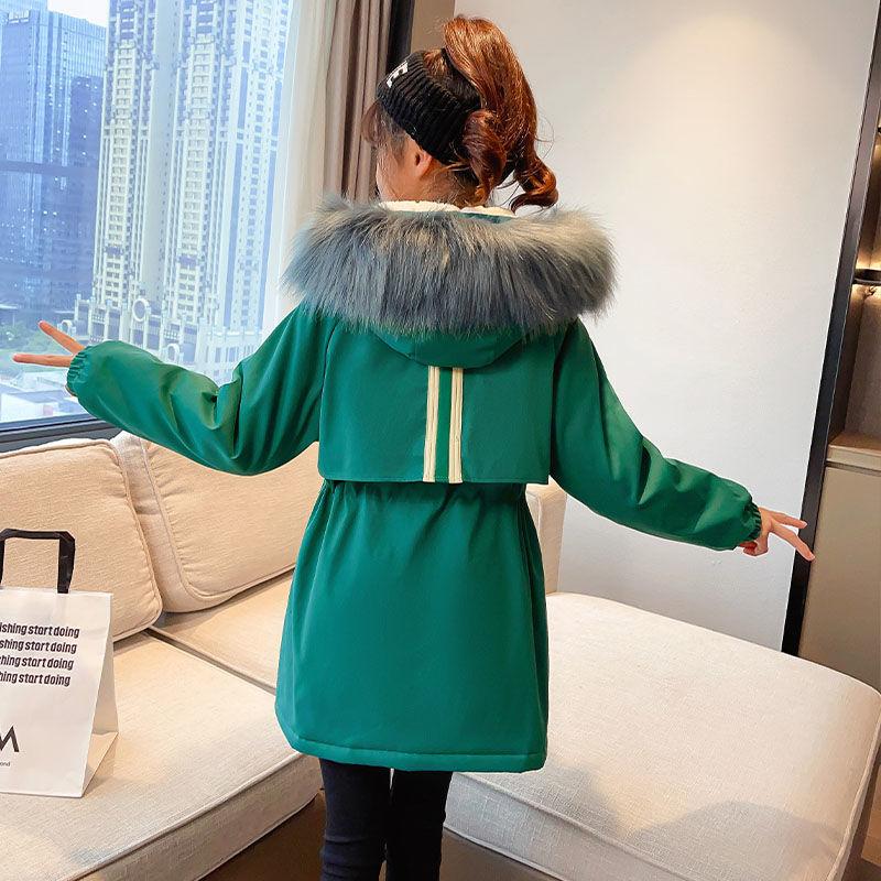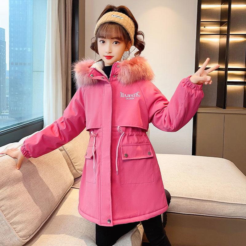 Зимнее флисовое пальто для девочек, толстый топ средней длины, детская модная парка с поясом