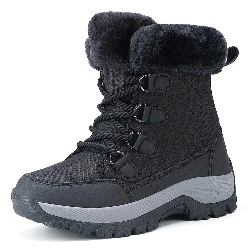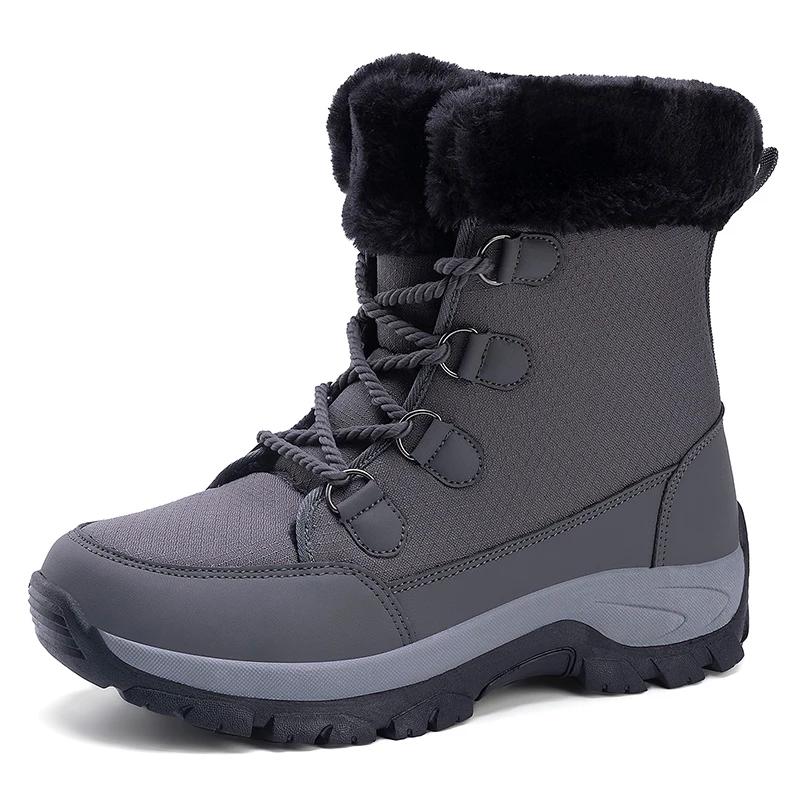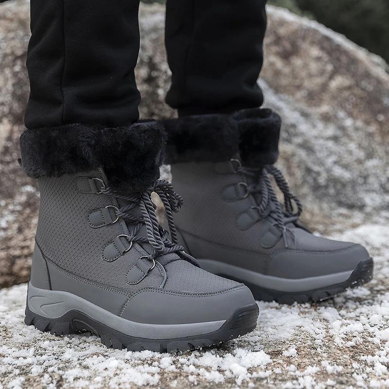 2024 Мужские зимние альпинистские кроссовки на толстой подошве, теплые плюшевые повседневные рабочие хлопковые туфли со шнуровкой, модные зимние ботинки для пар