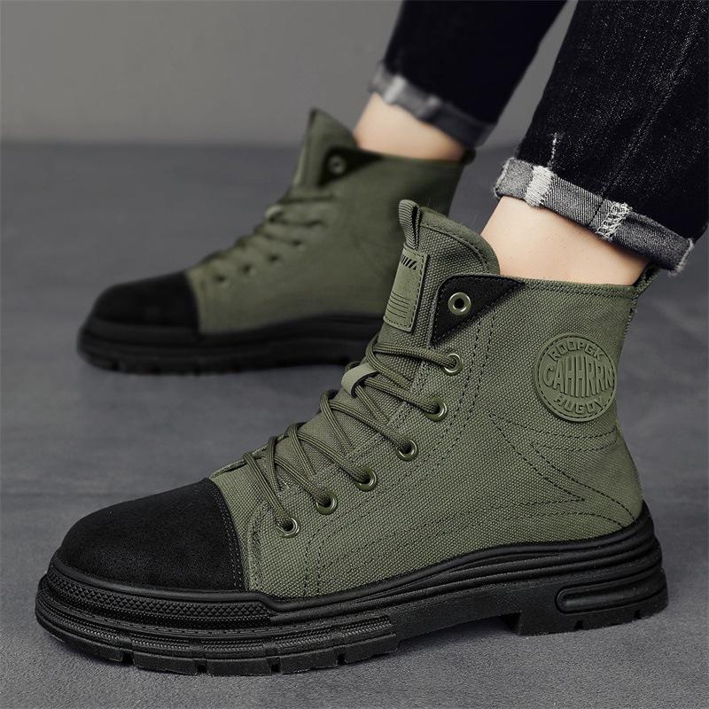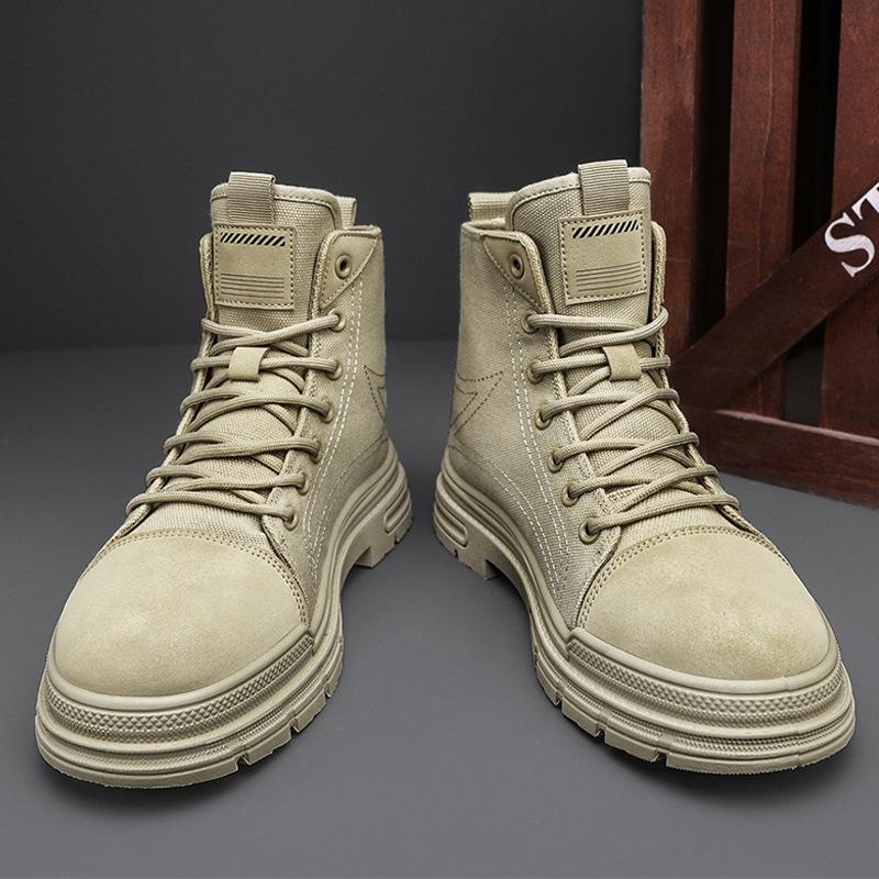 2024Мужские ботинки, дышащие повседневные ботинки из парусины, модные высокие кроссовки для мужчин, ботильоны на шнуровке, ковбойские сапоги на платформе, Botas